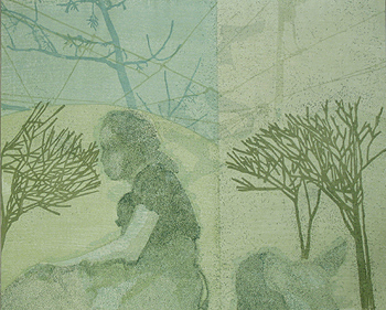 18" x 15" Japanese woodblock print (moku hanga) and etching on Nishinouchi paper
